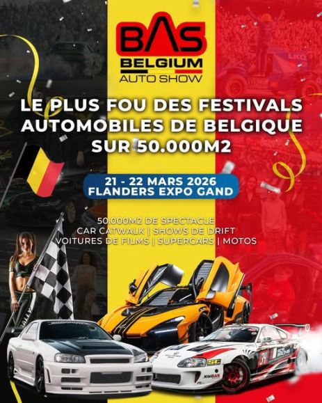 Belgium Auto Show au Flanders Expo de Gand, le plus grand salon automobile de Belgique ! C’est l’événement incontournable pour tous les passionnés d’automobiles et de motos de Belgique et d’ailleurs. Sur le Car Catwalk surélevé, admirez les voitures de show les plus spectaculaires, avec chaque heure un spectacle rempli d’interviews, de bolides flamboyants, de premières exclusives et bien plus encore. Dans la Live Action Arena, des dizaines de pilotes professionnels de drift assurent chaque jour des démonstrations spectaculaires, que des milliers de visiteurs peuvent admirer simultanément depuis les gradins extérieurs. Entre les spectacles, profitez de plus de 300 voitures de show uniques venues de toute l’Europe, exposées dans les différents halls. Des hypercars au tuning, des classiques aux motos — il y en a pour tous les goûts. Prenez la photo parfaite, admirez les voitures de près et rencontrez les propriétaires ainsi que d’autres passionnés d’automobiles. Et comme si cela ne suffisait pas, vous pourrez également prendre place dans un simulateur de course professionnel ou découvrir les derniers produits pour votre propre voiture. En bref : un week-end inoubliable à ne surtout pas manquer !